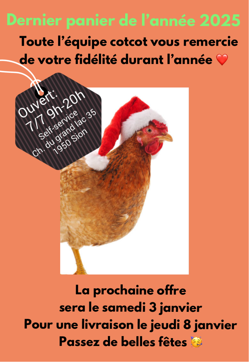 la prochaine offre se fera le samedi 3 janvier, pour une livraison le jeudi 8 janvier 2026